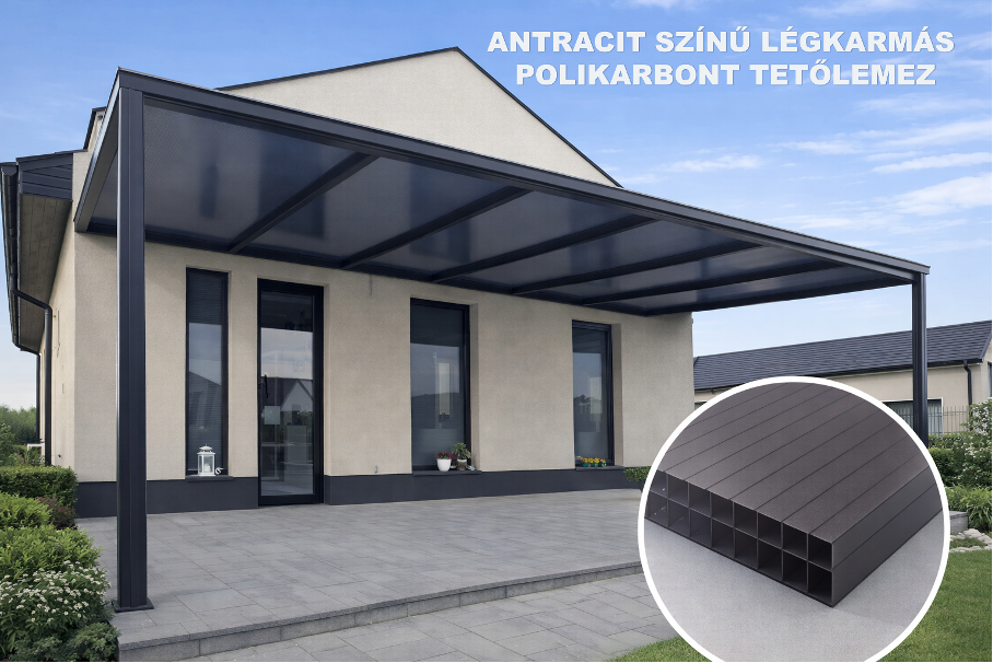 Antracit színű légkamrás polikarbonát: Modern és elegáns teraszfedés